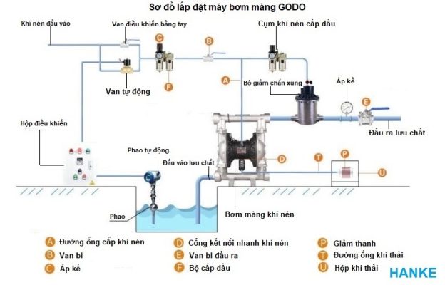 Sơ đồ lắp đặt máy bơm màng GODO
