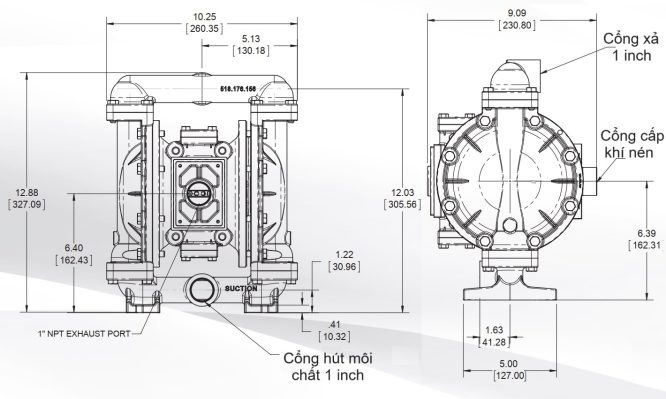 | Kích thước cổng hút, xả | 1″ (inch) NPT |